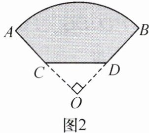 8.(2024·山西)图1是小区围墙上的花窗,其形状是扇形的一部分,图2是其几何示意图(阴影部分为花窗). 通过测量得到扇形$AOB$的圆心角为$90^{\circ}$,$OA = 1\ m$,点$C$,$D$分别为$OA$,$OB$的中点,则花窗的面积为__________$m^{2}$.