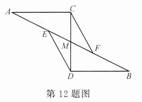 12. 如图,AC = BD,∠A = ∠B,点 E,F 在 AB 上,且 DE//CF,CD 与 AB 交于点 M,小明经过研究发现该图形是中心对称图形,则该图形的对称中心是________.