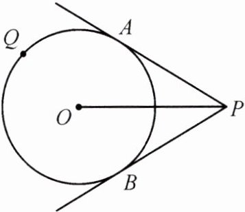 5. 如图,PA,PB分别切⊙O于A,B两点,已知⊙O的半径为4,$\overset{\frown}{AB}$的度数为120°,Q是⊙O上一动点,则PQ长的最大值是( )