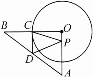 2. 如图,在Rt△AOB中,∠AOB = 90°,OA = 4,OB = 6,以点O为圆心、3为半径的⊙O与OB交于点C,过点C作CD⊥OB交AB于点D,点P是边OA上的动点,则PC + PD的最小值为________.