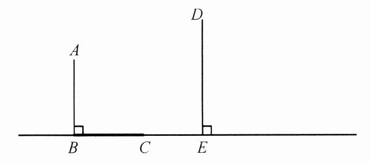 14. 如图,AB和DE是直立在地面上的两根立柱,AB=5 m,某一时刻,AB在阳光下的投影BC=4 m.