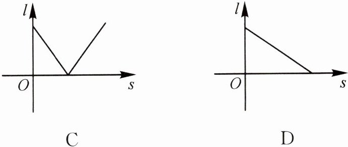 12. 【真实问题情境】如图,某小区内有一条笔直的小路,路的正中间有一路灯,晚上小华由A处走到B处,她在灯光照射下的影长l与行走的路程s之间的变化关系用图象刻画出来大致是( )