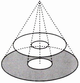 13. 圆桌面(桌面中间有一个直径为0.4 m的圆洞)正上方的灯泡(看作一个点)发出的光线照射平行于地面的桌面后,在地面上形成如图所示的圆环形阴影. 已知桌面直径为1.2 m,桌面离地面1 m. 若灯泡离地面3 m,则地面圆环形阴影的面积是( )