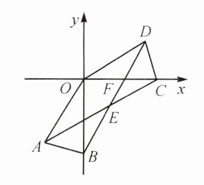 13. 如图,在平面直角坐标系中,$OA = OB$,且$\angle AOB = 30^{\circ}$,其中点$B$在$y$轴上,将$\triangle AOB$绕点$O$逆时针旋转$120^{\circ}$得到$\triangle COD$,连接$BD$,$AC$,$BD$与$AC$交于点$E$,与$OC$交于点$F$.