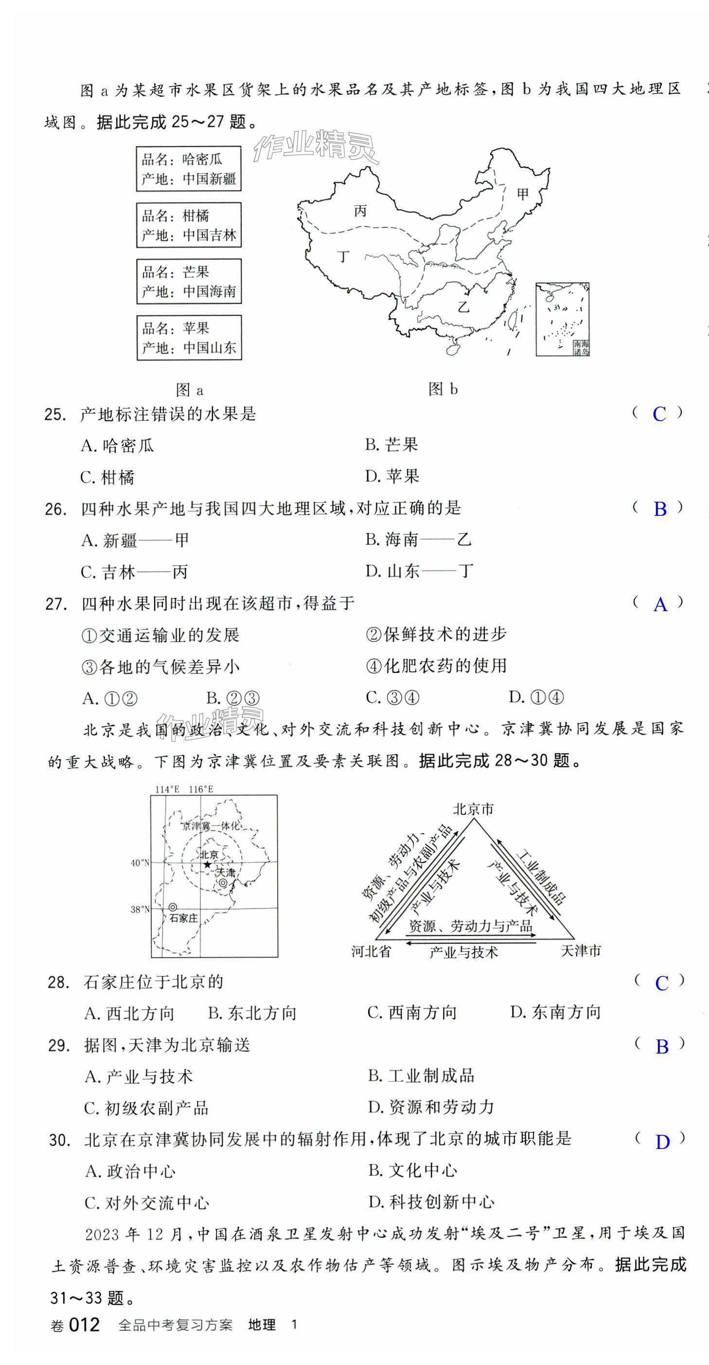 注:目前有些书本章节名称可能整理的还不是很完善,但都是按照顺序排列的,请同学们按照顺序仔细查找。练习册 2025年全品中考复习方案地理宿迁专版 答案主要是用来给同学们做完题方便对答案用的,请勿直接抄袭。