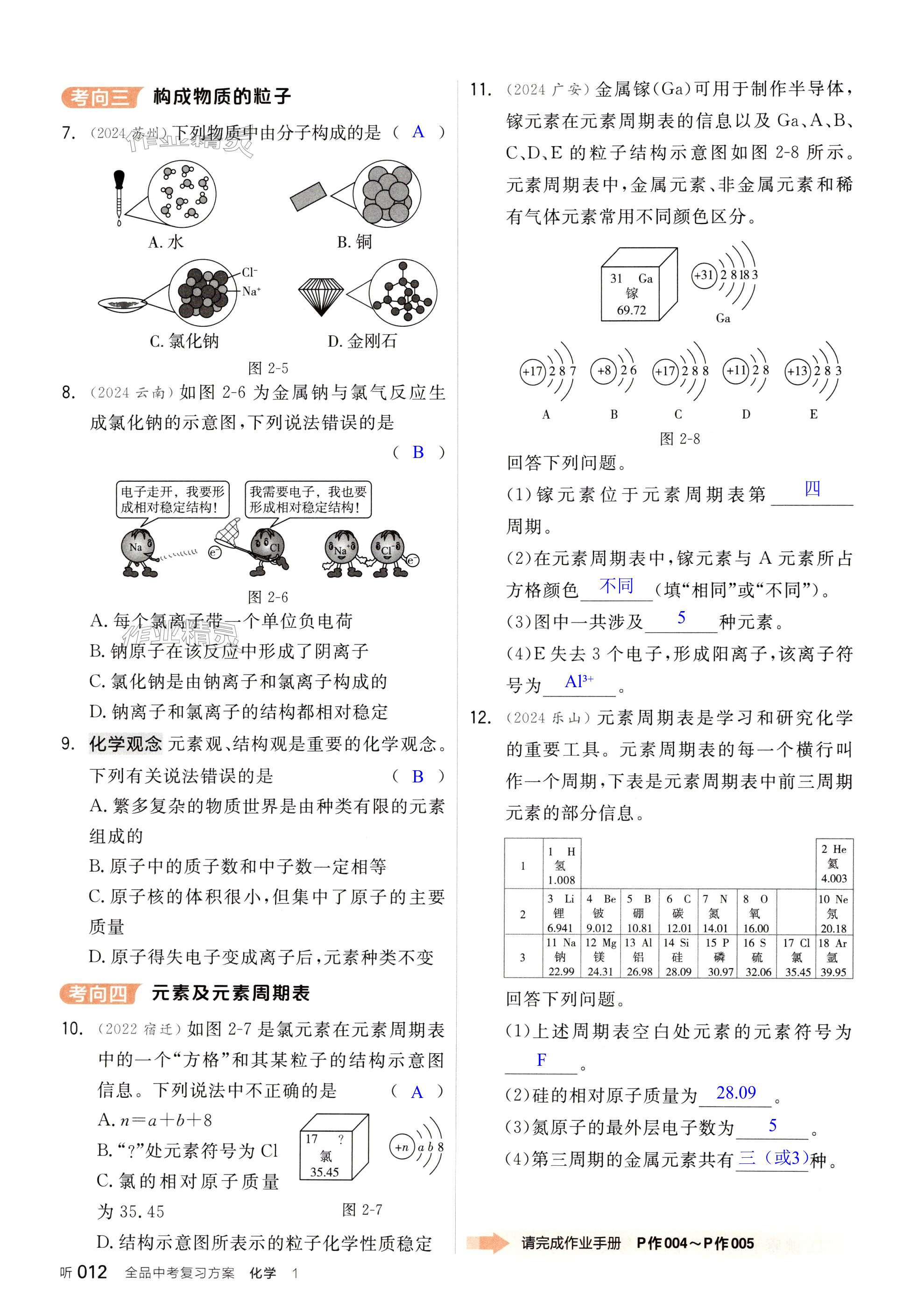 注:目前有些书本章节名称可能整理的还不是很完善,但都是按照顺序排列的,请同学们按照顺序仔细查找。练习册 2025年全品中考复习方案化学鲁教版宿迁专版 答案主要是用来给同学们做完题方便对答案用的,请勿直接抄袭。