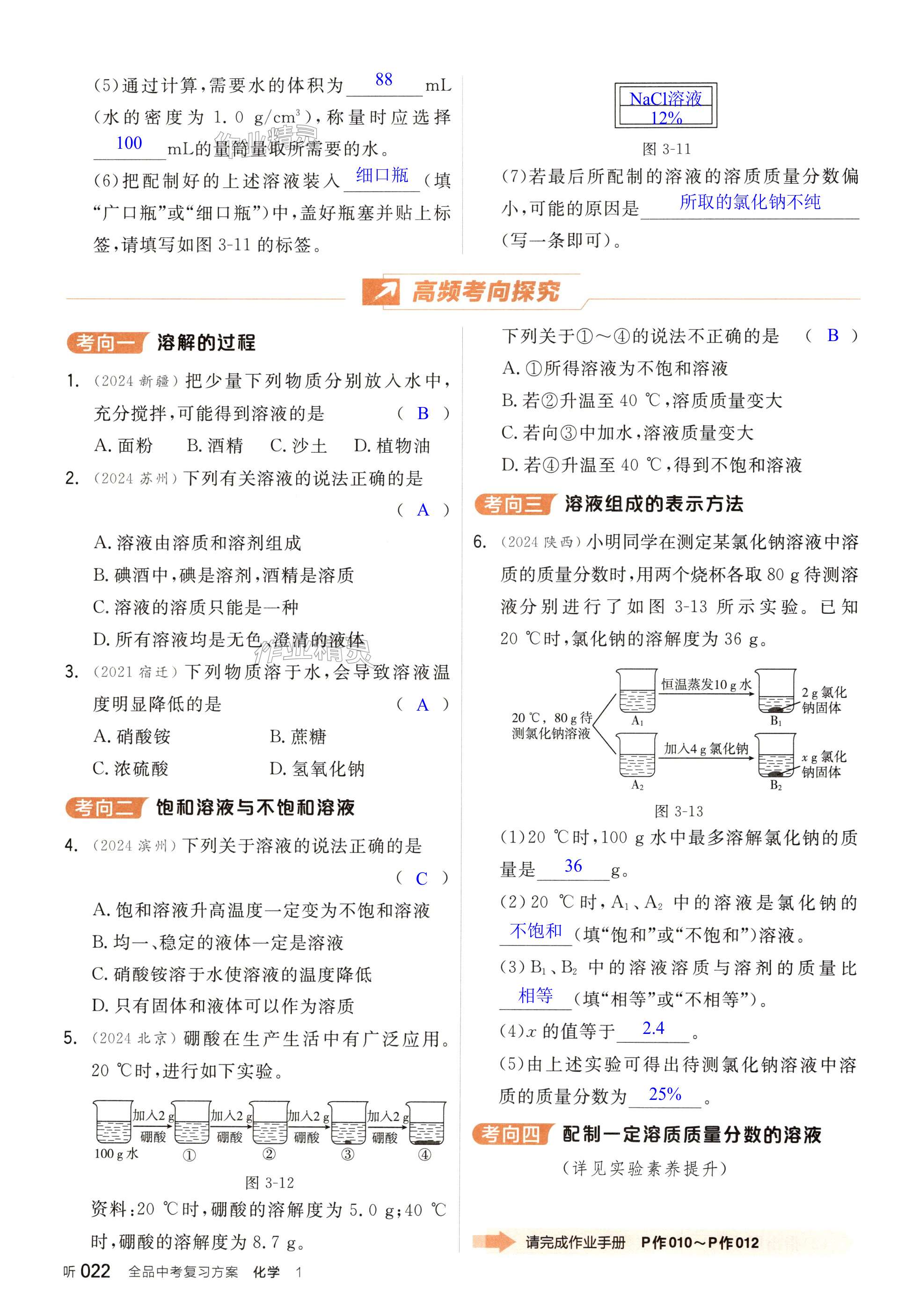 注:目前有些书本章节名称可能整理的还不是很完善,但都是按照顺序排列的,请同学们按照顺序仔细查找。练习册 2025年全品中考复习方案化学鲁教版宿迁专版 答案主要是用来给同学们做完题方便对答案用的,请勿直接抄袭。