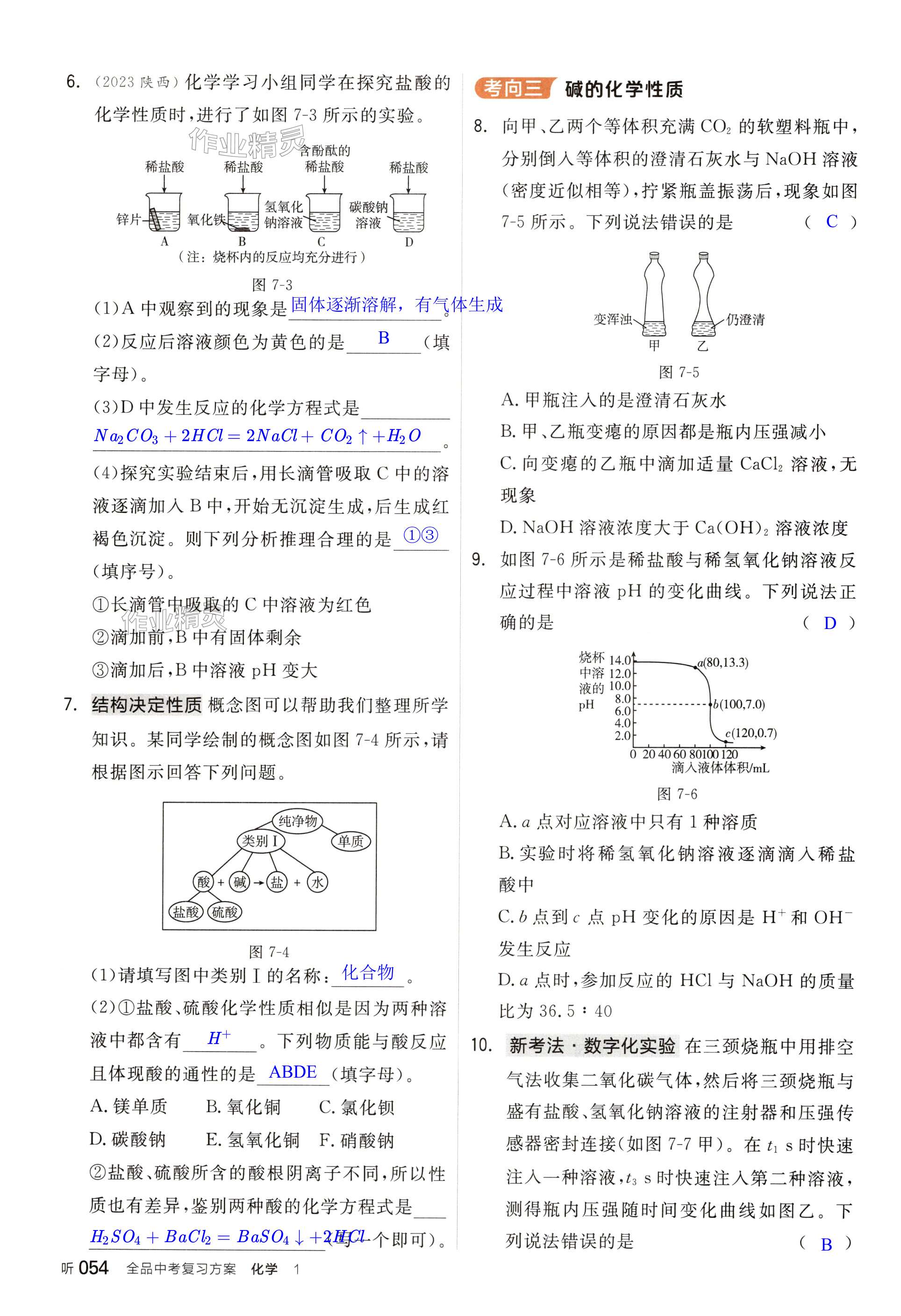 注:目前有些书本章节名称可能整理的还不是很完善,但都是按照顺序排列的,请同学们按照顺序仔细查找。练习册 2025年全品中考复习方案化学鲁教版宿迁专版 答案主要是用来给同学们做完题方便对答案用的,请勿直接抄袭。