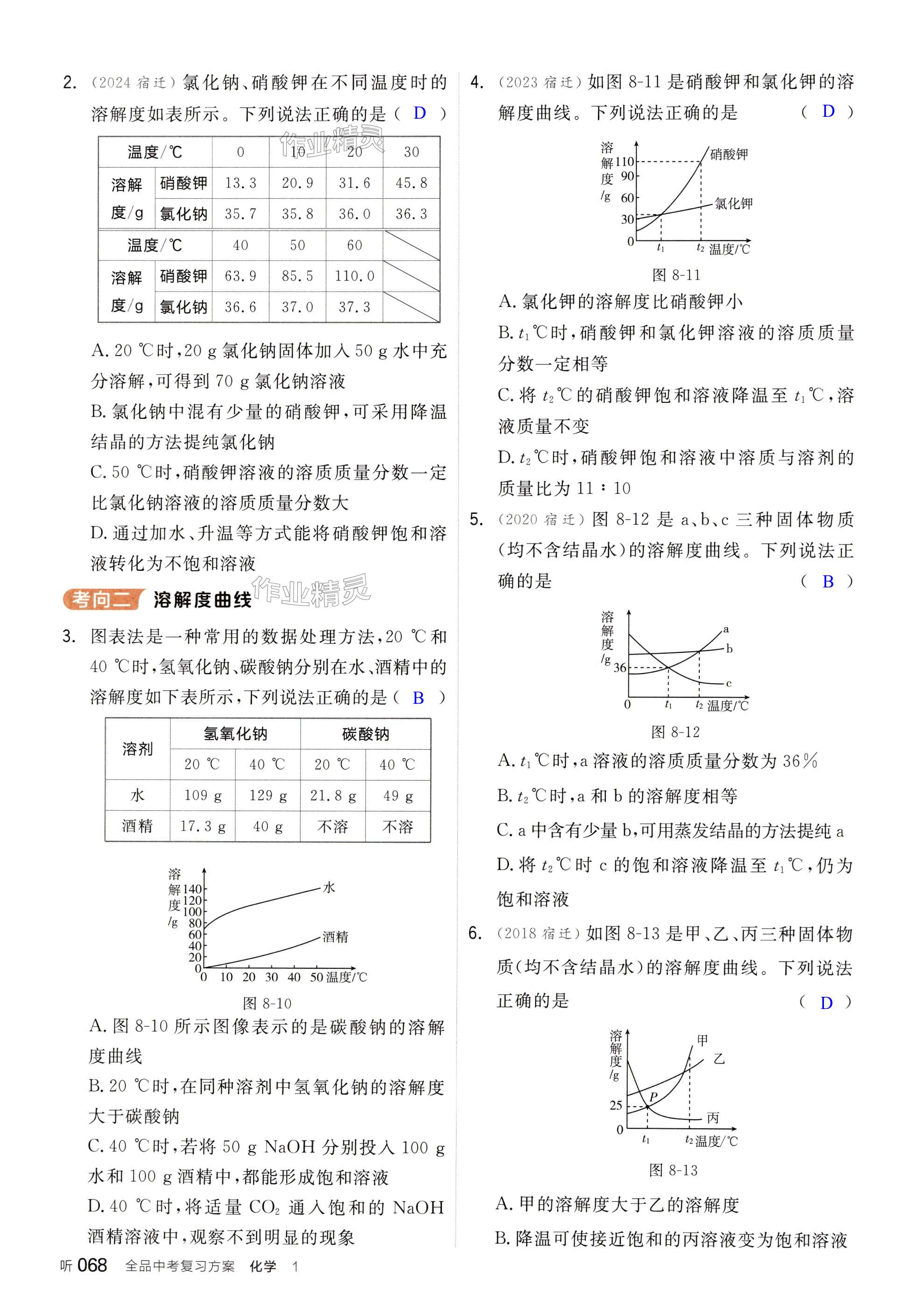 注:目前有些书本章节名称可能整理的还不是很完善,但都是按照顺序排列的,请同学们按照顺序仔细查找。练习册 2025年全品中考复习方案化学鲁教版宿迁专版 答案主要是用来给同学们做完题方便对答案用的,请勿直接抄袭。
