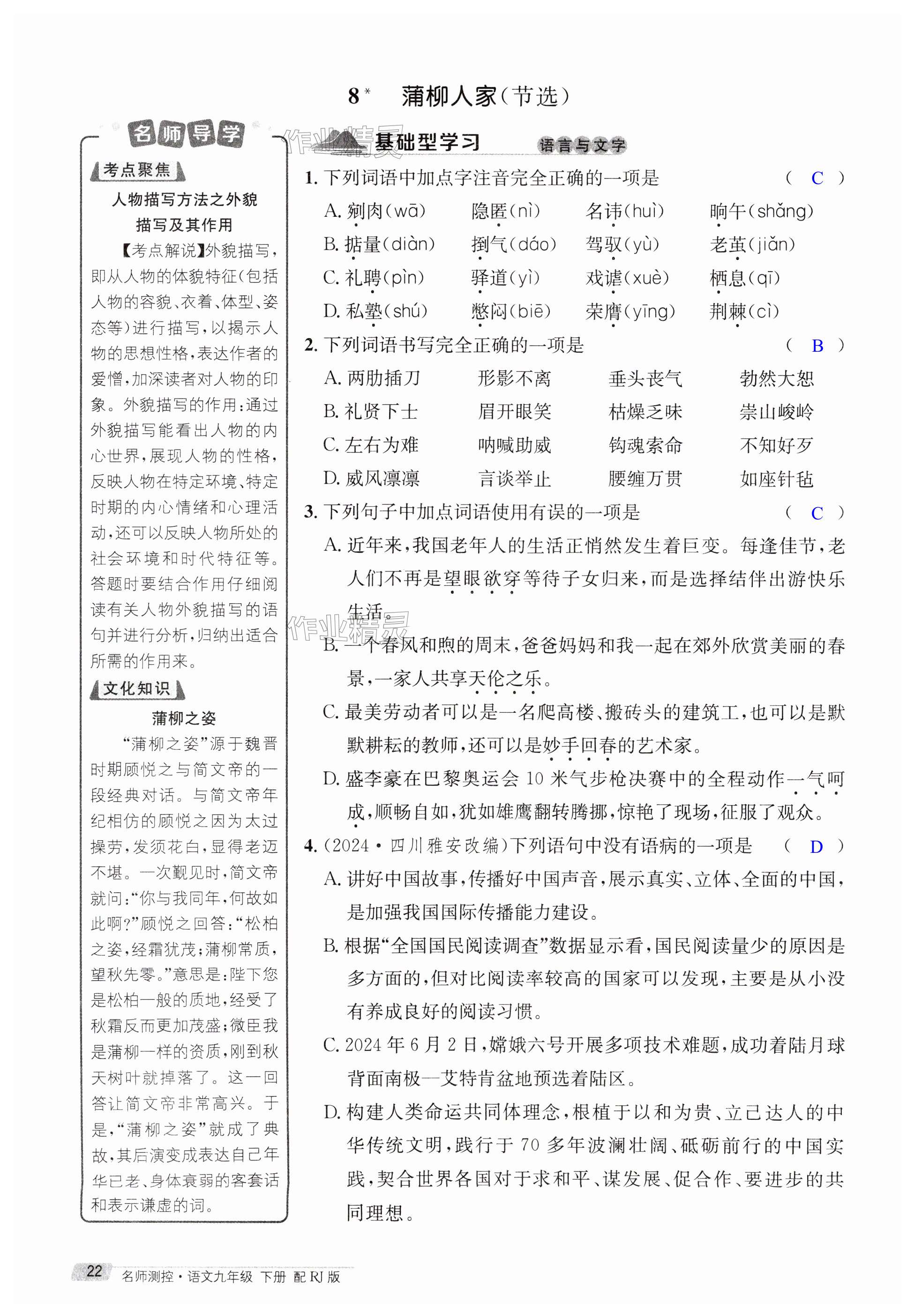 注:目前有些书本章节名称可能整理的还不是很完善,但都是按照顺序排列的,请同学们按照顺序仔细查找。练习册 2025年名师测控九年级语文下册人教版湖北专版 答案主要是用来给同学们做完题方便对答案用的,请勿直接抄袭。