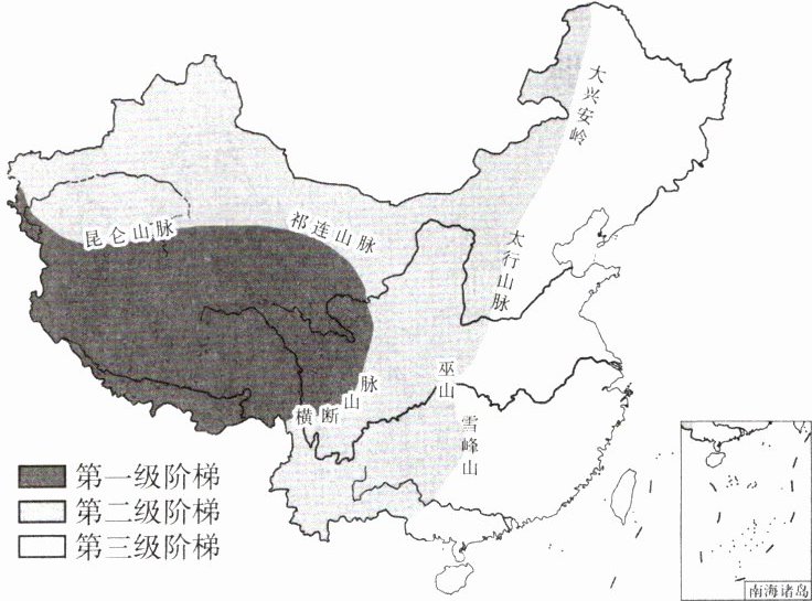 | |阶梯界线|______—祁连山脉—横断山脉|
