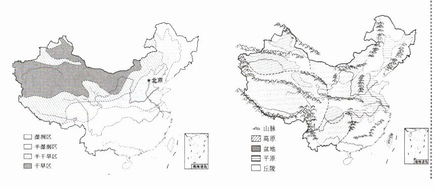 ③高原荒漠 ④低山丘陵