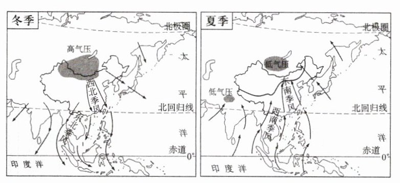 @@太平洋 印度洋 寒冷干燥 温暖湿润 寒潮 大风 霜冻 旱涝