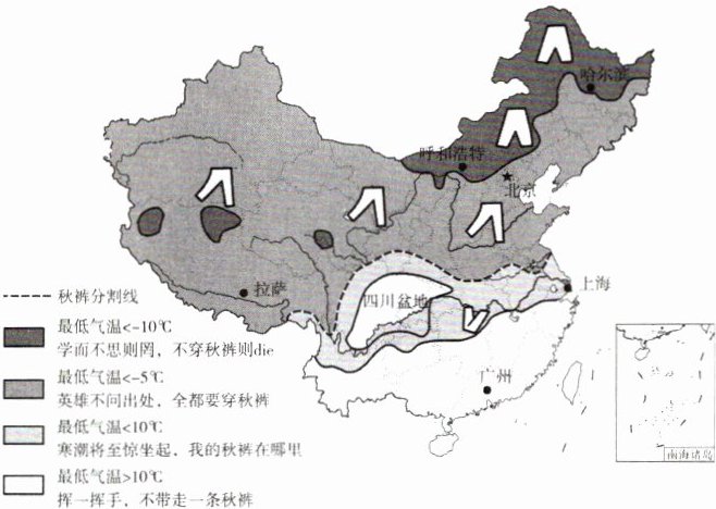 1.根据该年“秋裤预警地图”,以下说法正确的是 ( )