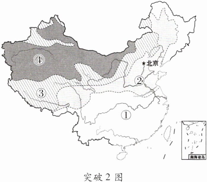 突破2 [2023.宿迁]读“我国干湿地区分布图”,完成1~2题。