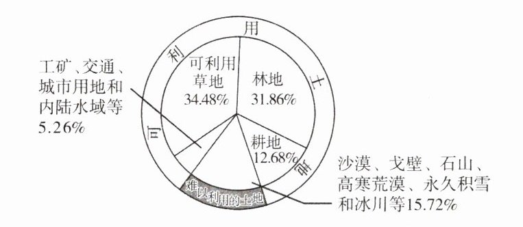 1. 土地资源的利用类型:农业用地包括_____、_____、_____;建设用地包括城乡建设用地、交通用地和工矿用地。