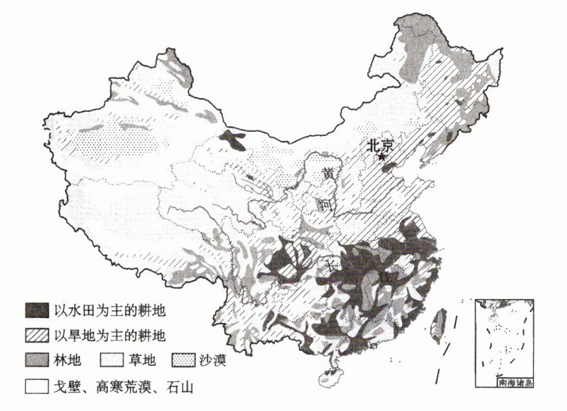 (2)不利:人均不足;__________少,__________多,__________不足,人与耕地的矛盾突出。
