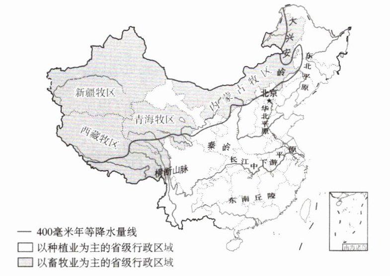|西部|畜牧业|四大牧区(______牧区、______牧区、______牧区、______牧区)|