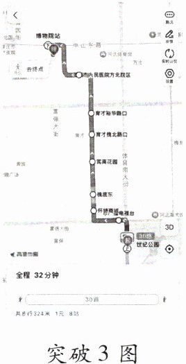 突破3 [2024.河北模拟]2024年五一假期,家住石家庄的小林同学计划到河北省博物院参观游览,如图示意小林同学用手机查询的交通出行信息。据此,完成1~3题。