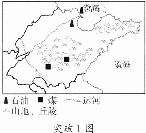 突破1 [2023.德州]山东省位于中国东部沿海、黄河下游。读山东省简图,判断下列叙述正确的是( )