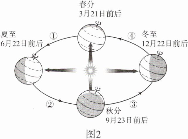 9. 5月30日地球在公转轨道上的位置最接近图2中的( )