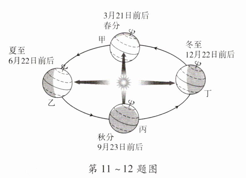 [2024·宜宾]我国载人航天工程为人类探索太空贡献了中国力量。2024年4月25日,神舟十八号载人飞船在甘肃省酒泉卫星发射中心成功发射,预计将在空间站驻留约6个月,开展空间科学与应用实验、空间搭载试验和科普教育等活动。下图为地球公转示意图。据此,完成11~12题。