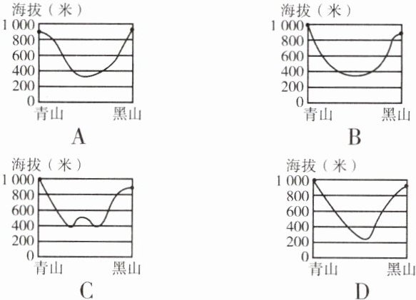 (5)野外实践活动结束后,同学们绘制了图中沿m线的地形剖面图。以下剖面图中,与实际最吻合的是________。(单项选择)
