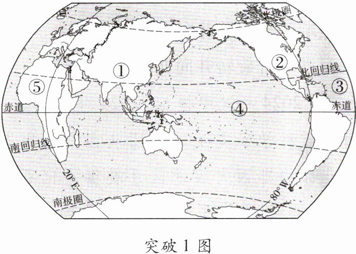 C.①大洲是世界面积最大、跨经度最广的大洲