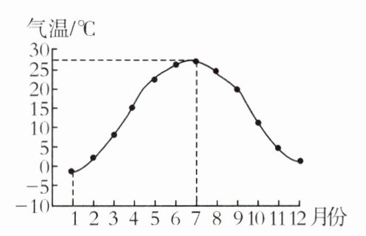| 月平均气温最低值 | 1月 | __月 | 7月 | __月 |