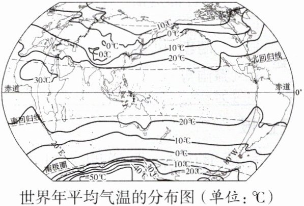 (5)等温线大致沿东西方向延伸,说明南北方向存在气温差异。