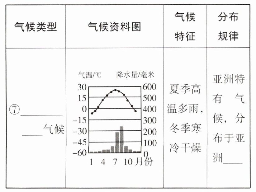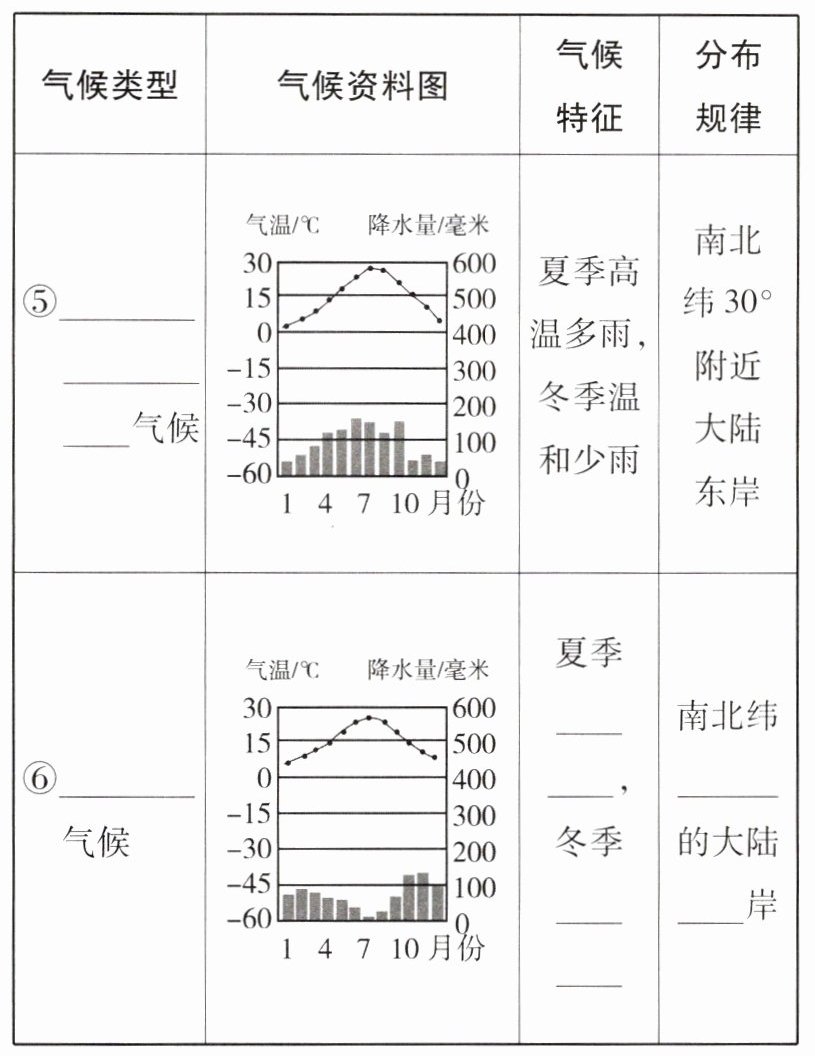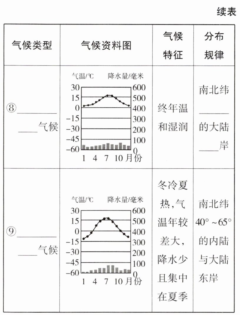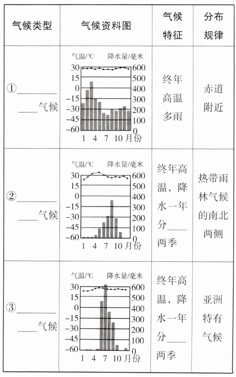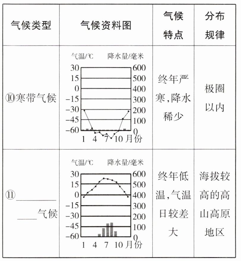 科学家主要依据各地________和________组合形成的气候特征,划分出一系列的气候类型。