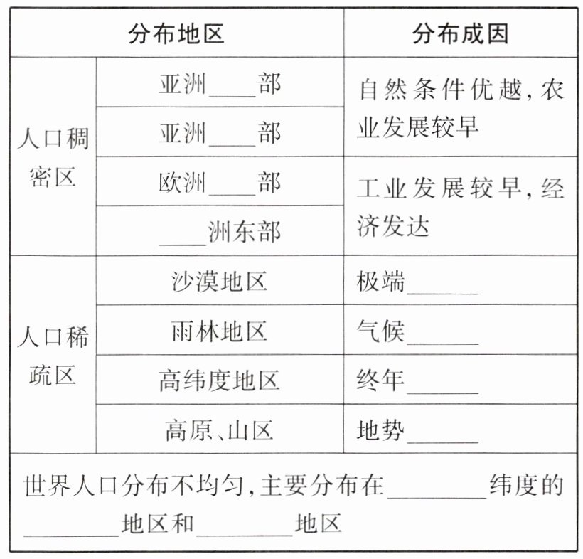世界人口分布受自然条件和社会经济条件的制约,人口分布不均匀。