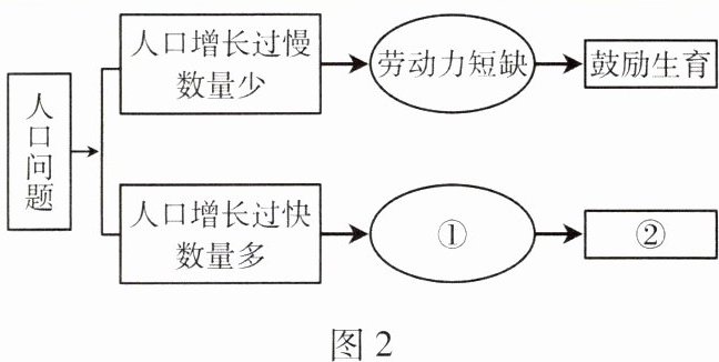 2. 人口数量过多或过少,人口增长过快或过慢,都可能会产生相应的人口问题。下列选项与图2内容相符合的是 ( )