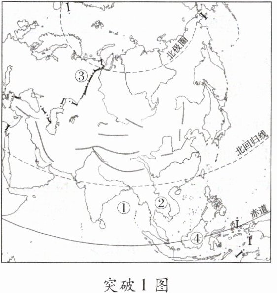 突破1 [2024.黑龙江]读“亚洲简图”,完成1~2题。