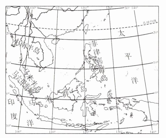 1.(1)中南半岛 马来群岛 (2)热2.亚 大洋 太平 印度(1)马六甲海峡(2)海上生命线 太平 印度