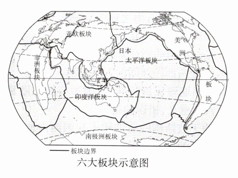 突破2[2024.滨州]日本平均每天发生约5次有感地震。作为一个地震频发的国家,传统建筑在建造时会考虑到抗震因素。读六大板块示意图和日本传统建筑景观图,完成1~2题。