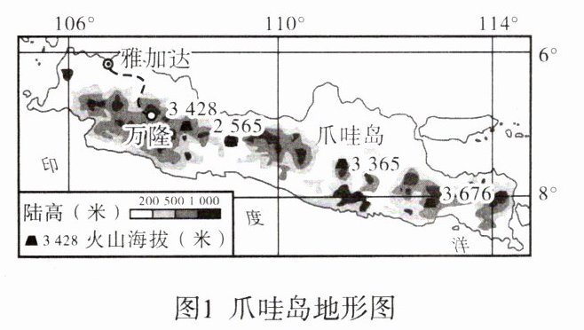 (4)爪哇岛滑坡、泥石流灾害频发,结合地图从自然角度分析原因。