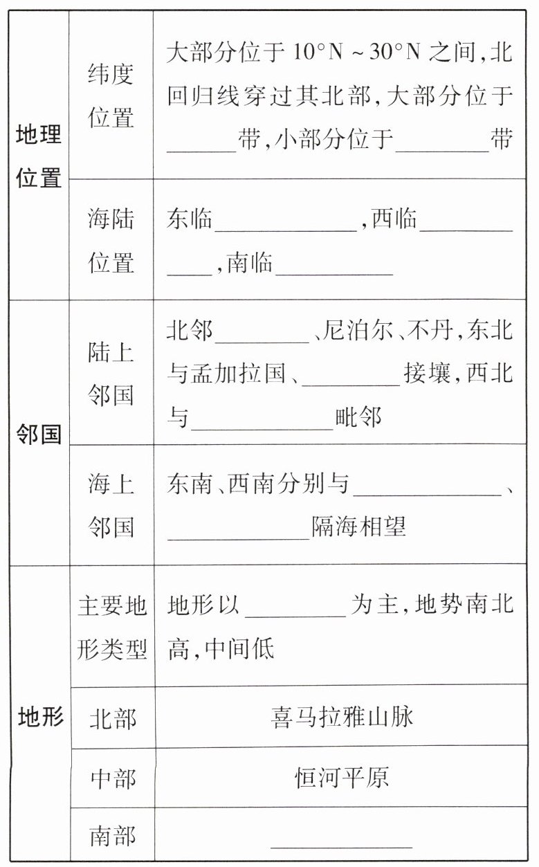 1. 印度是南亚地区面积最大的国家。位于中国西南部,喜马拉雅山脉与印度洋之间。