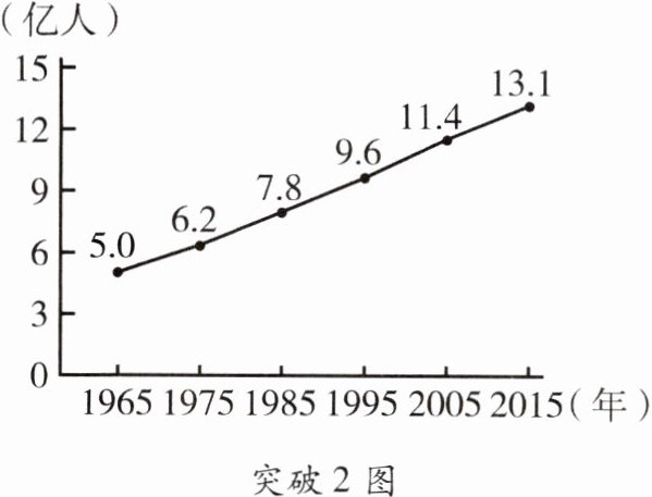 突破2 [2022.青岛]印度人口众多,粮食消费量很大。受季风气候的影响,农业生产经常歉收,过去粮食需大量进口。读印度人口增长图,印度人口特点是 ( )