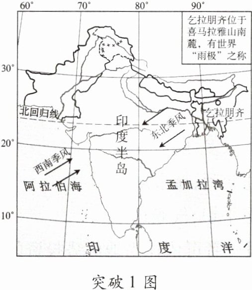 突破1 [2023.江西]下图为南亚局部地区略图,据此,完成1~3题。