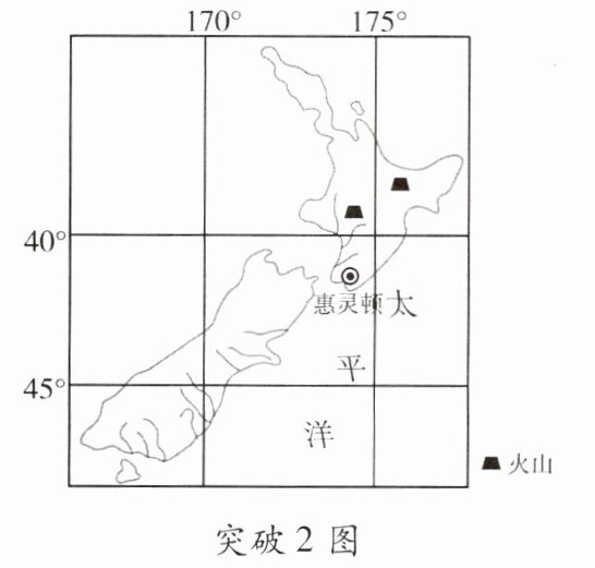 突破2 [2024·重庆]新西兰位于大洋洲,由两座主岛及附近小岛组成,多火山和地震。如图为新西兰位置示意图。新西兰位于 ( )