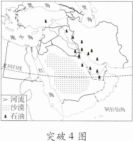 突破4 [2024·云南]西亚地区冲突不断,一直是全世界关注的焦点,读“西亚地区示意图”,完成1~2题。