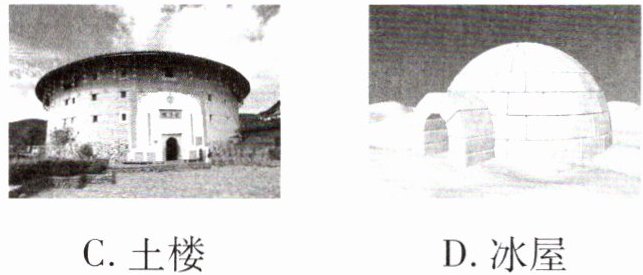 2.根据当地自然环境,推断该地典型的传统民居可能是 ( )