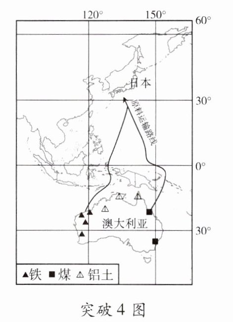 突破4][2024.苏州]日本和澳大利亚的资源禀赋差异较大,在经济上长期开展贸易合作。读澳大利亚和日本示意图,完成1~2题。