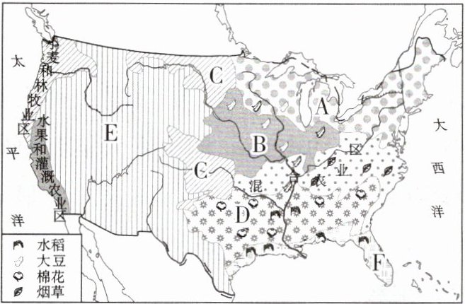 3. 本土主要农业带:A. ______、B. ______、C. ______、D. ______、E. ______、F. ______等。