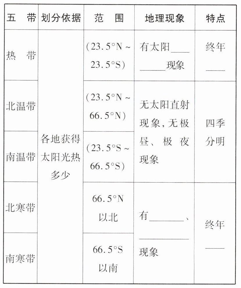 太阳 自西向东 四季 昼夜长短 五带