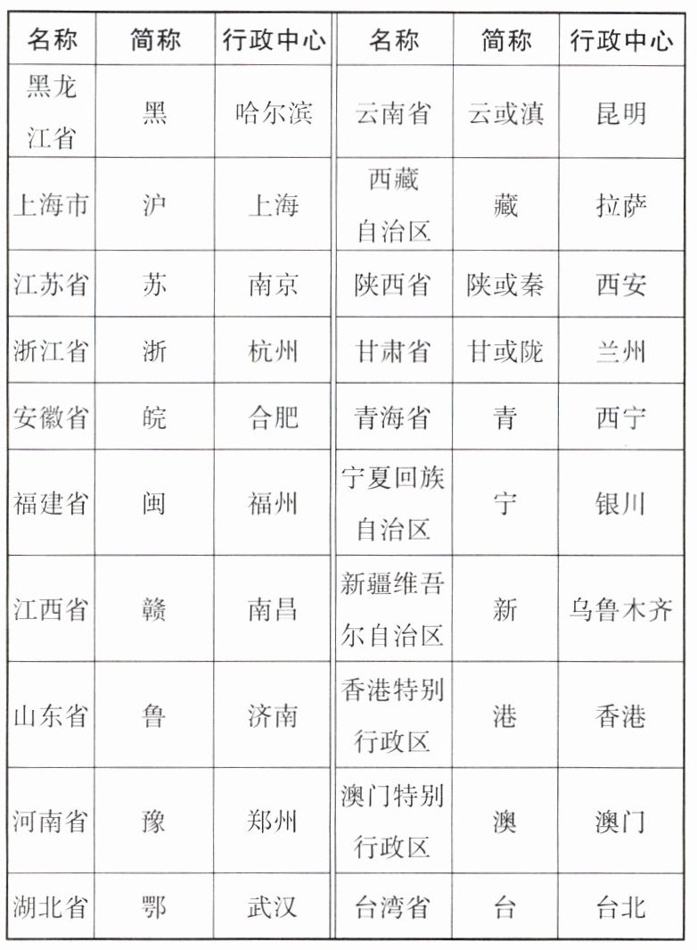 1. 我国的行政区划分为______(自治区、直辖市、特别行政区)、______(市、自治县)、______(镇、民族乡)三级。共有______个省级行政区域,含23个______、5个______、4个______和2个______。
