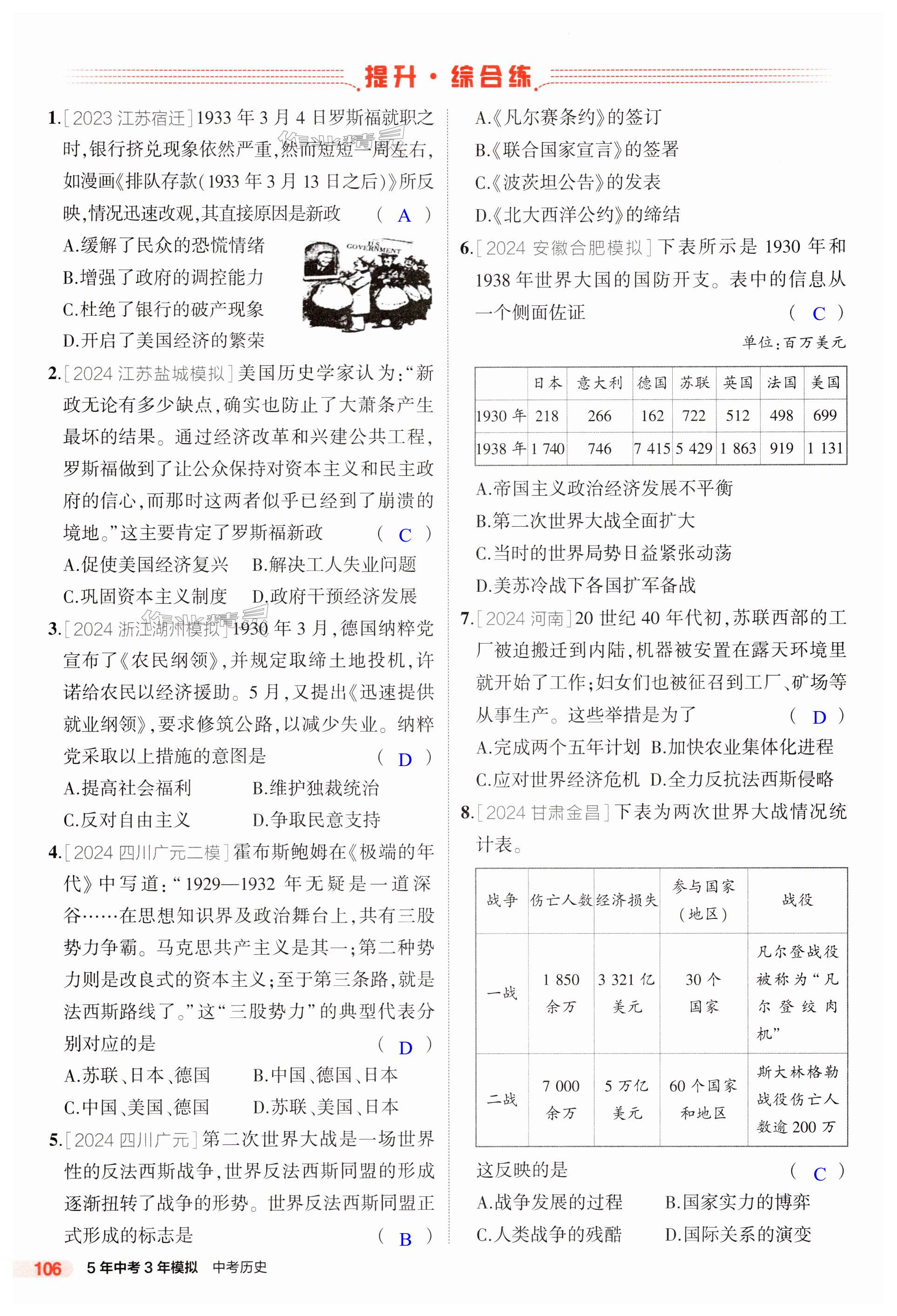 注:目前有些书本章节名称可能整理的还不是很完善,但都是按照顺序排列的,请同学们按照顺序仔细查找。练习册 2025年5年中考3年模拟历史人教版山东专版 答案主要是用来给同学们做完题方便对答案用的,请勿直接抄袭。