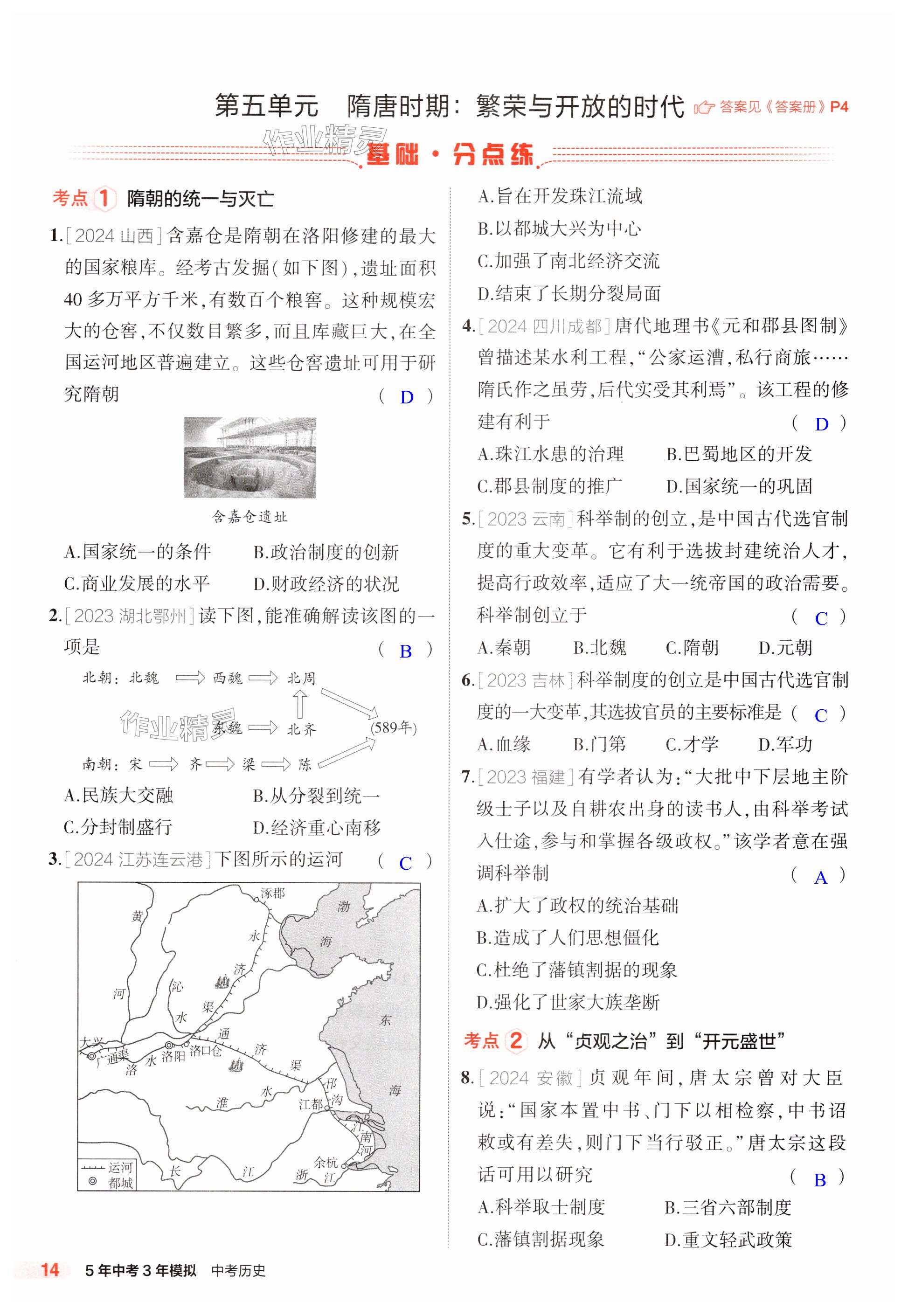 注:目前有些书本章节名称可能整理的还不是很完善,但都是按照顺序排列的,请同学们按照顺序仔细查找。练习册 2025年5年中考3年模拟历史人教版山东专版 答案主要是用来给同学们做完题方便对答案用的,请勿直接抄袭。