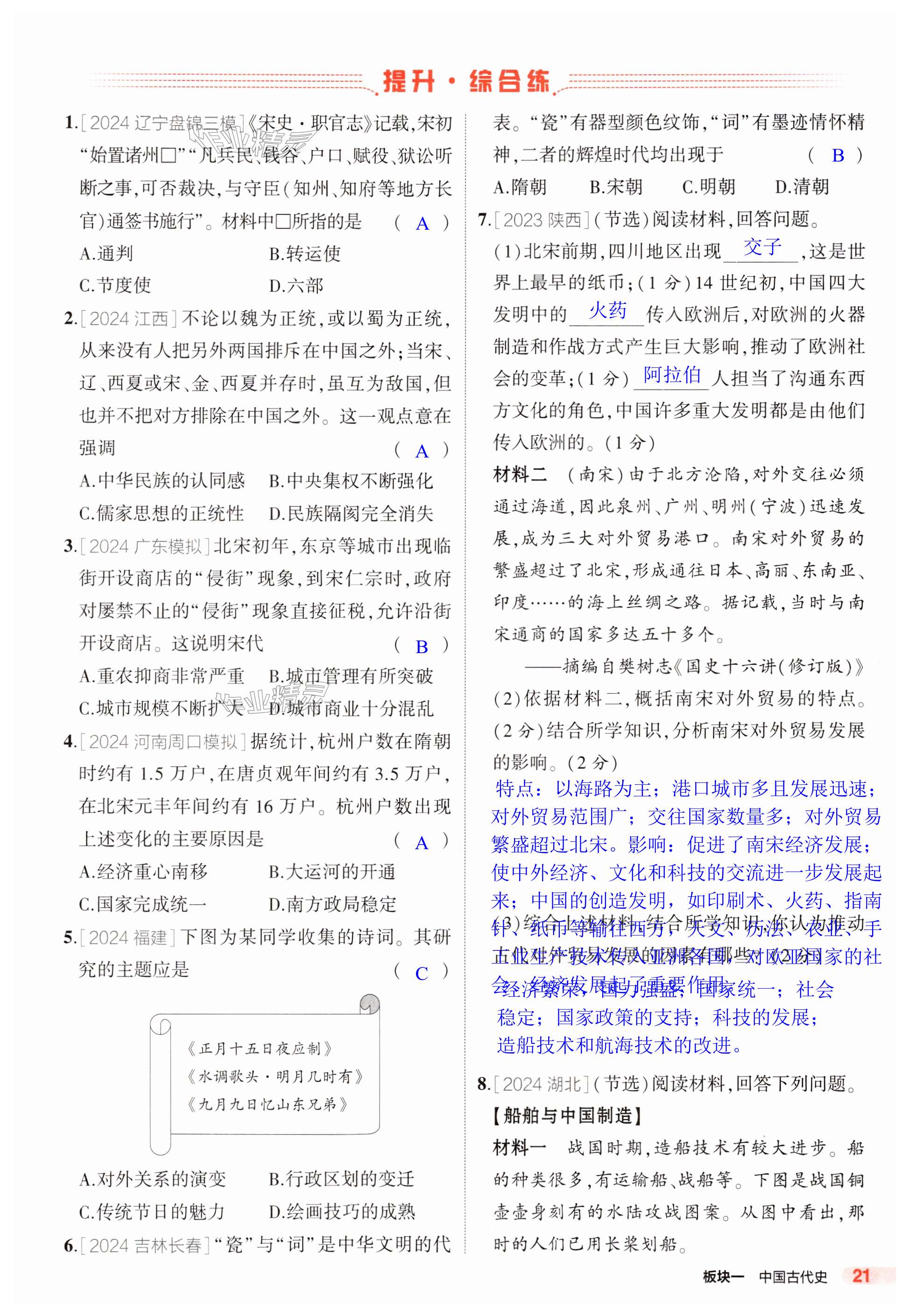 注:目前有些书本章节名称可能整理的还不是很完善,但都是按照顺序排列的,请同学们按照顺序仔细查找。练习册 2025年5年中考3年模拟历史人教版山东专版 答案主要是用来给同学们做完题方便对答案用的,请勿直接抄袭。